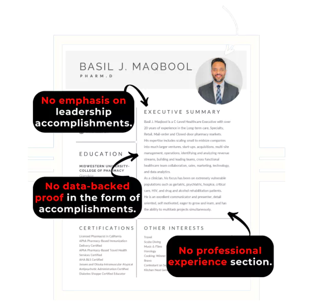 I had been in senior leadership roles for over 15 years, but my resume didn’t reflect my true potential. The C-suite resume writing service I received from Executive Resume Agency completely transformed it. The team crafted a resume that showcased my executive achievements and leadership impact. Within 2 weeks, I landed an interview with a Fortune 500 company.